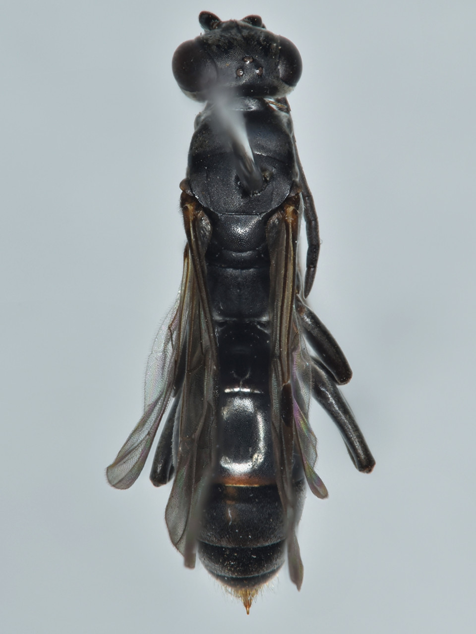イワタヒゲクモバチ ヤドリヒゲクモバチ亜属Nipponodipogonに含まれる。メスの触角は紡錘形で短く、上唇の下縁がえぐれない。ナガセヒゲクモバチに似ているが、メスの腹部第2腹板の横溝は直線状。他のヒゲクモバチ類やヒメクモバチ類に労働寄生する。