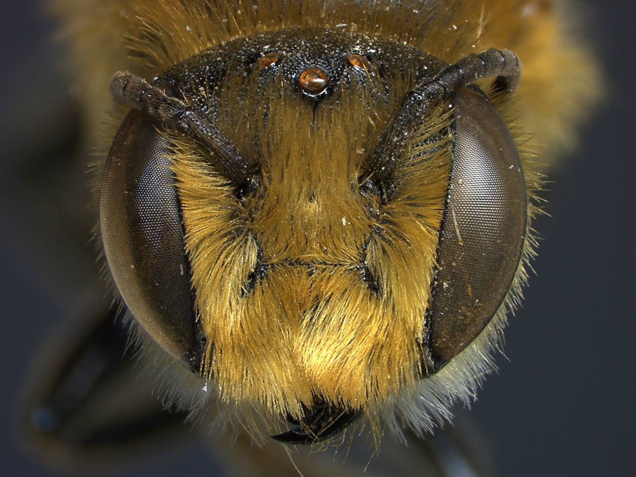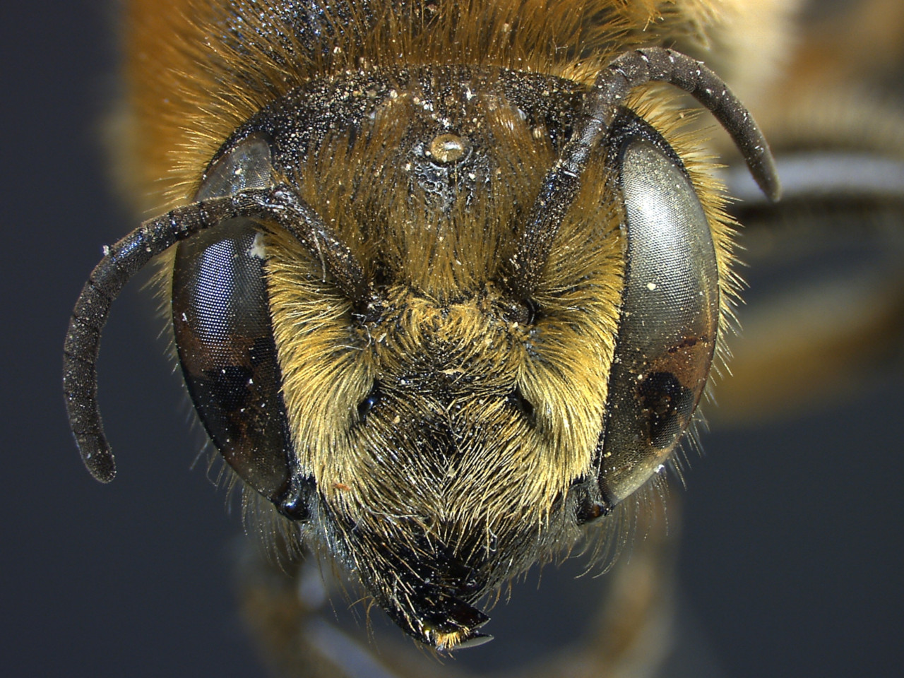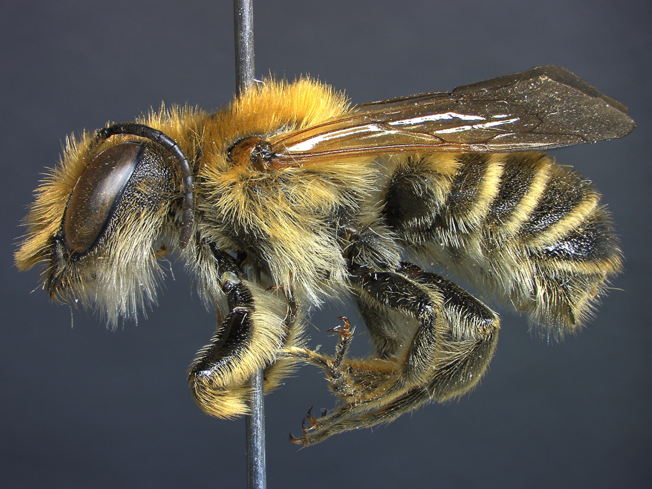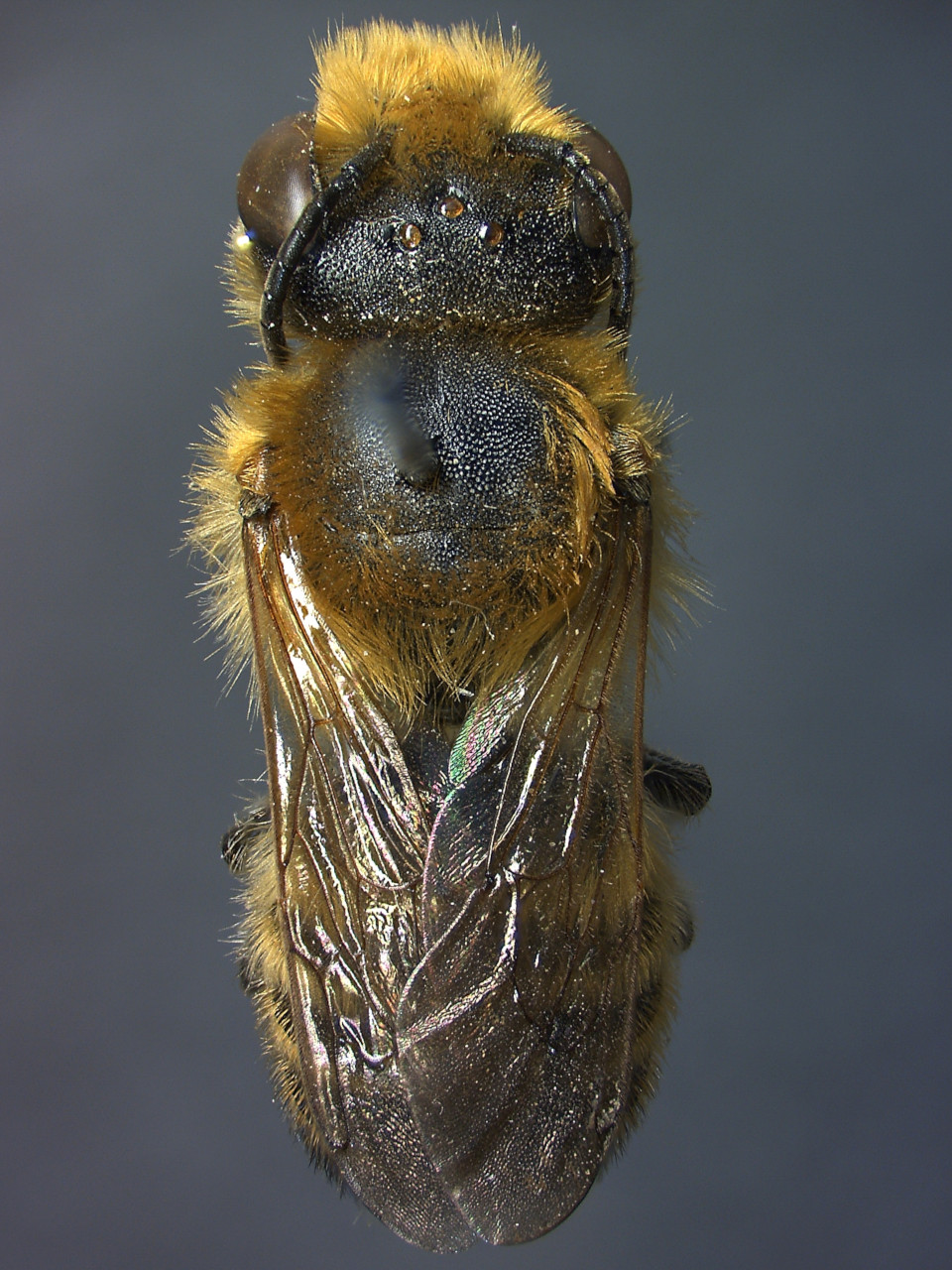 Body black. This species is similar to Megachile tsurugensis, but differs from it in that both sexes lack black hairs on the top of the head and thorax.