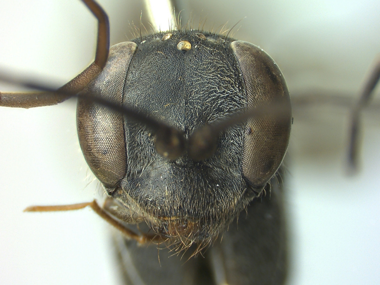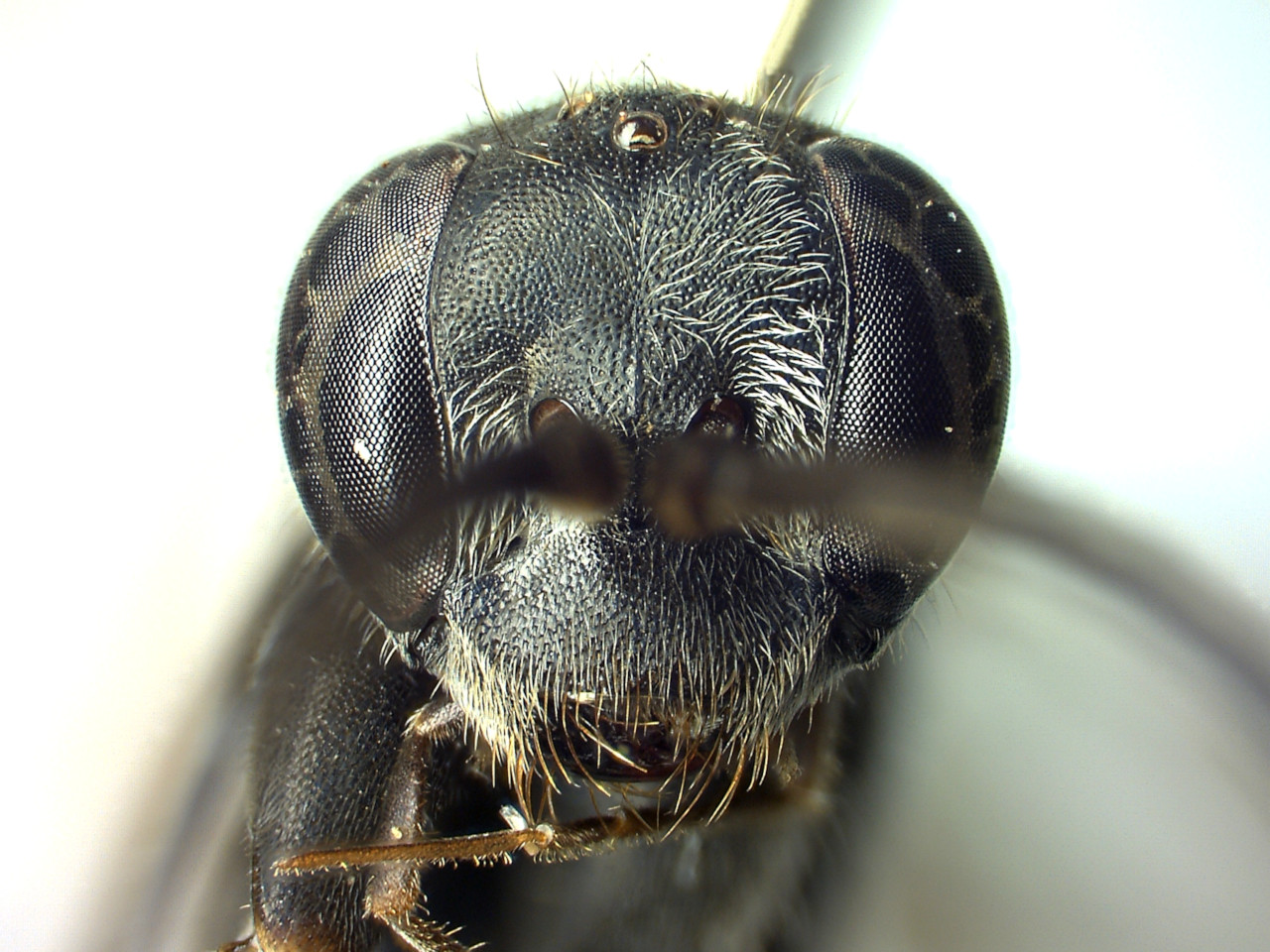 Dipogon conspersus (Pérez, 1905) Body black, entirely covered with grayish-white fine hairs. Females have numerous long erect hairs on the lower part of the middle and hind femora. Females of this genus have a very long, curved bundle of bristles at the base of maxilla. This genus, which has many similar species, is principally forest dwellers, whose nests have spindle-shaped cocoons in cells.